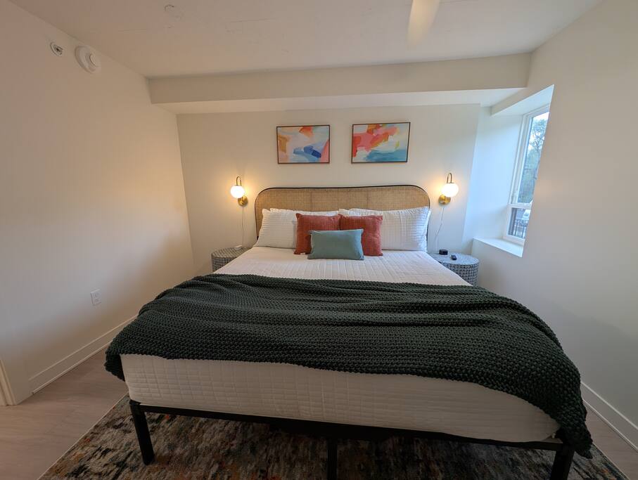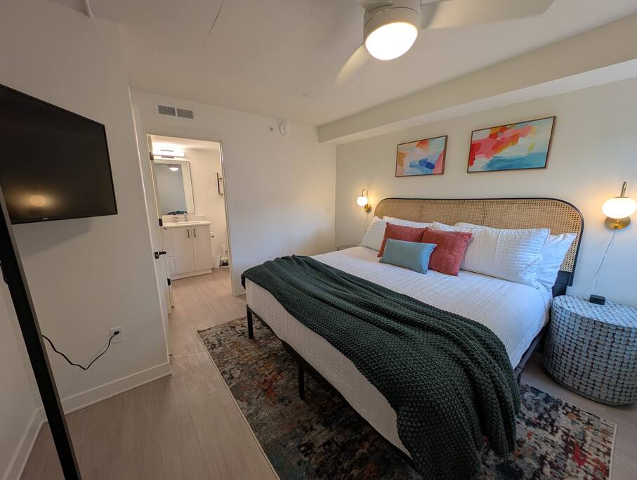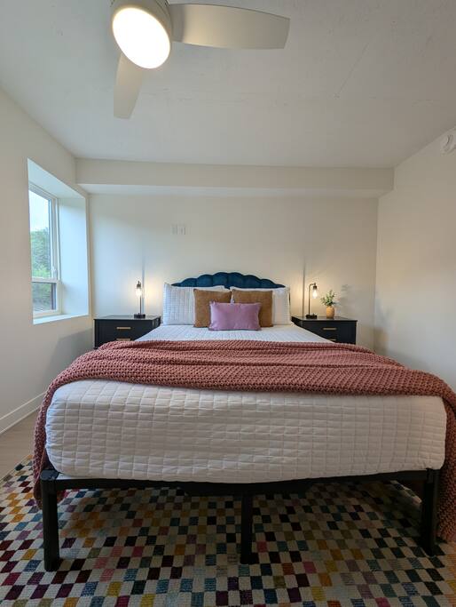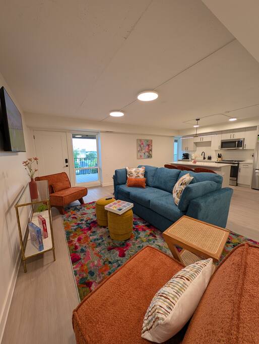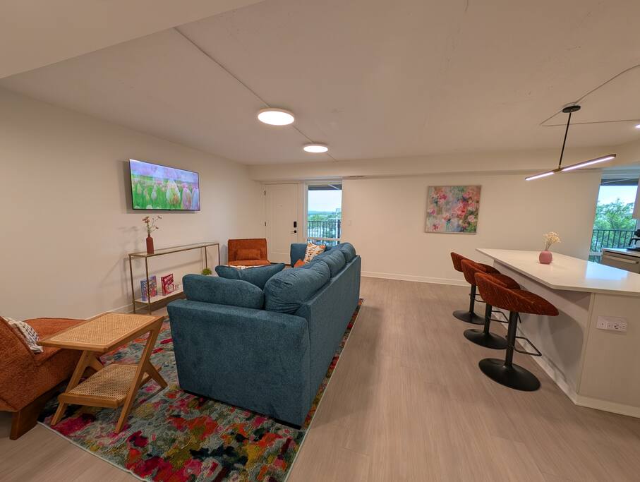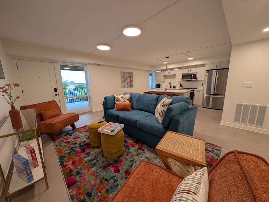 Welcome to your home above the hills! This remodeled 2BR/2BA loft at Skyline Lofts blends comfort, style, and sweeping views of the K-State campus and Flint Hills. Sunlight fills the open layout, showcasing modern cabinetry and a lively mix of bright colors, playful accents, and cozy furnishings. Designed for easy, memorable stays—perfect for game days, campus visits, or a vibrant Manhattan getaway.