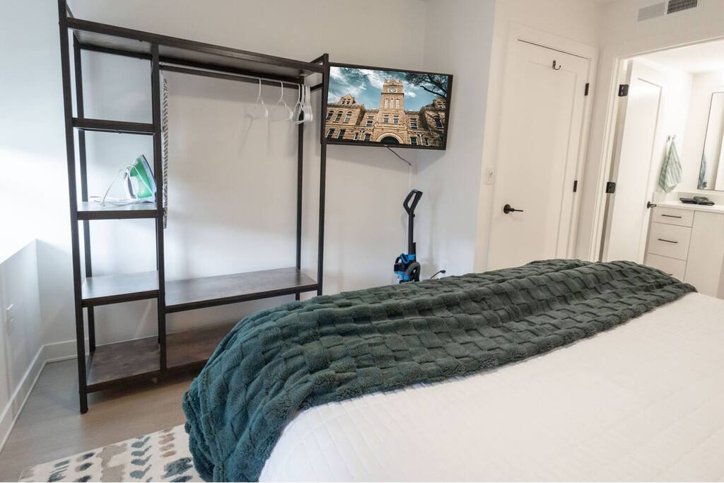 🛏️ Sleeping Arrangements: King Suite with smart TV and private ensuite bathroom Queen Bedroom with comfortable bedding Queen Sleeper Sofa in the open living area Sleeps up to 6 guests comfortably 🍽️ Features You'll Love: Open-concept living, dining, and kitchen area — perfect for gathering Fully equipped kitchen with updated appliances Smart TV and fast Wi-Fi for work or entertainment Elevator access and free on-site parking for convenience This sleek and serene loft is perfect for game days, weekend getaways, or extended stays in Manhattan, KS. Whether you’re visiting family, touring campus, or just soaking in the view, the Skyline Loft offers an unforgettable stay.