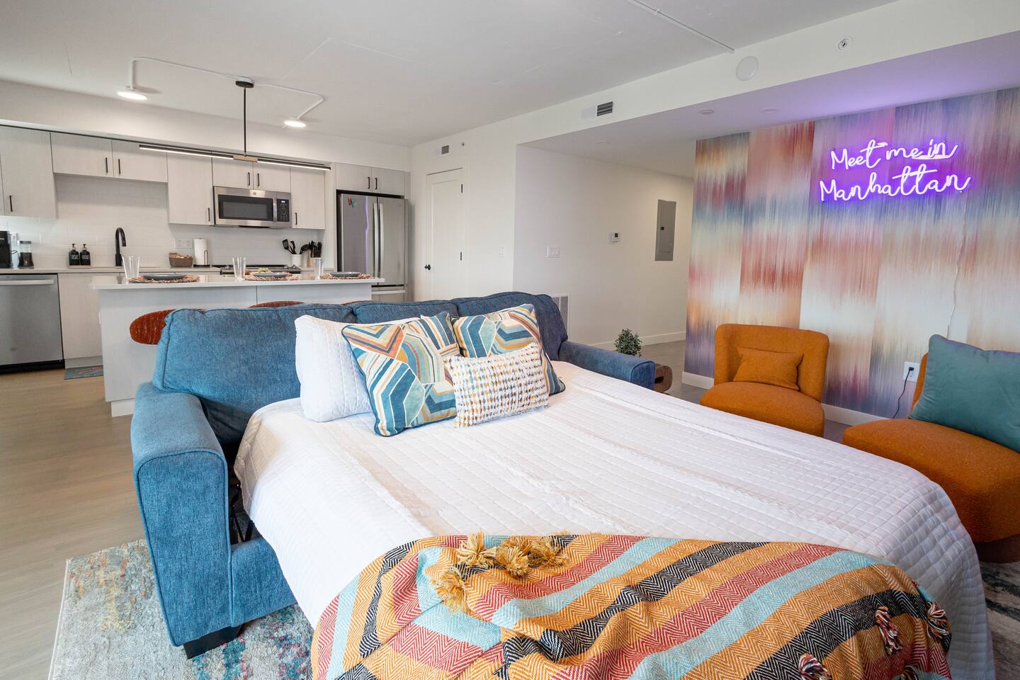 🛏️ Sleeping Arrangements: King Suite with smart TV and private ensuite bathroom Queen Bedroom with comfortable bedding Queen Sleeper Sofa (Lazboy) in the open living area Sleeps up to 6 guests comfortably 🍽️ Features You'll Love: Open-concept living, dining, and kitchen area — perfect for gathering Fully equipped kitchen with updated appliances Smart TV and fast Wi-Fi for work or entertainment Elevator access and free on-site parking for convenience This sleek and serene loft is perfect for game days, weekend getaways, or extended stays in Manhattan, KS. Whether you’re visiting family, touring campus, or just soaking in the view, the Skyline Loft offers an unforgettable stay. 🌟 Nearby Attractions & Local Highlights 🏟️ Bill Snyder Family Stadium/Bramlage Coliseum – 0.8 miles ⚾ Tointon Family Stadium – 0.3 miles 🏫 Kansas State University – 0.5 miles 🦓 Sunset Zoo – 3.3 miles 🌿 Flint Hills Discovery Center – 2.5 miles ⛺ Tuttle Creek State Park – 5.4 miles 🛍️ Manhattan Town Center – 2.4 miles (7 min drive) 🍴 Guest-Favorite Dining Nearby 🍺 Kite’s Bar & Grill – 1.2 mi | Game Day Favorite Since 1954 A K-State institution! Burgers, beers, and big game energy in Aggieville. 🍔 So Long Saloon – 1.2 mi | K-State Classic in Aggieville Great burgers, cold drinks, and a vibrant vibe steps from campus. 🌮 Taco Lucha – 1.2 mi | Funky Tacos & Margaritas Creative tacos, killer queso, and a lively patio make this a go-to for locals and visitors alike. 🍕 AJ’s NY Pizzeria – 2.0 mi | Authentic New York-Style Pizza Huge slices, local beer, and a downtown view—yes please. 🍳 The Chef Café – 2.1 mi | Beloved Brunch Spot Voted one of the best breakfast joints in Kansas. Expect a wait—it’s worth it.