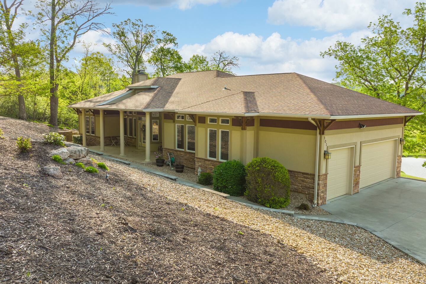 A personal golf cart is provided for convenient trips around the Osage National Golf Resort (cart is for neighborhood use only, cannot be used on the golf course) where you can utilize the fitness center, pool, and enjoy Stay & Play rates at the golf course! Spacious 3 car garage allows you to park your vehicles inside.