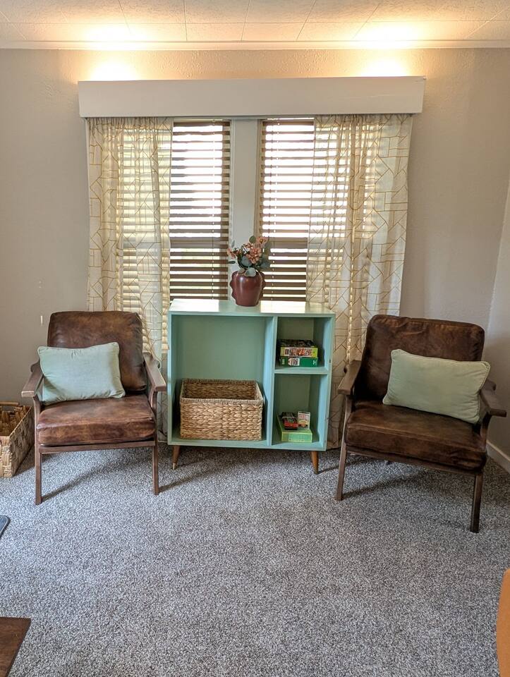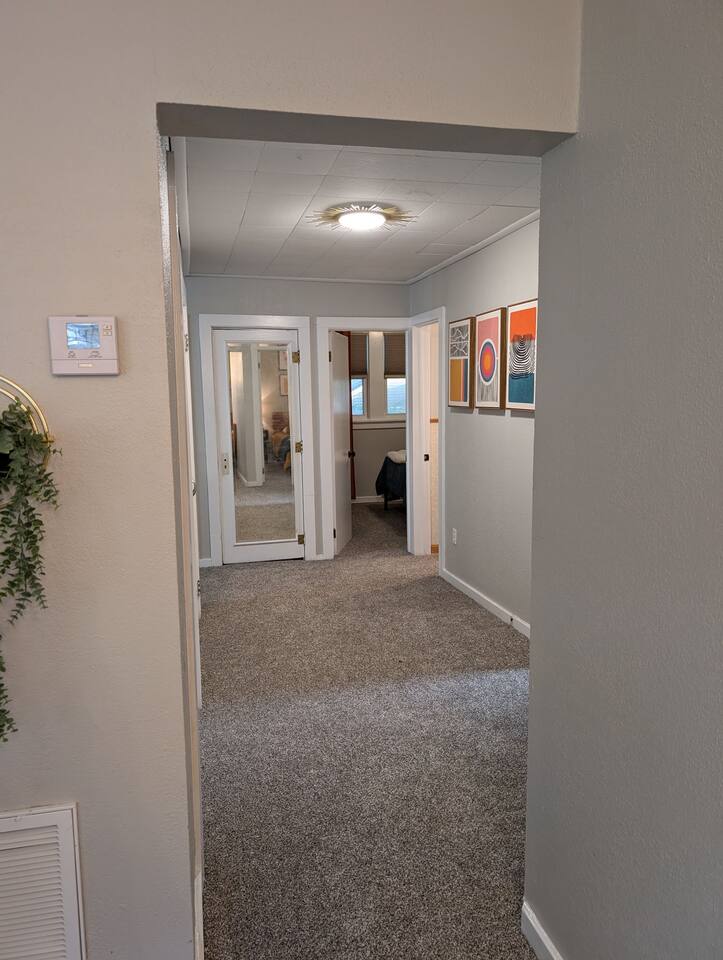 The Space Details: --Bedrooms-- Master Bedroom: King bed/charging ports/darkening shades/ceiling fan/bedside sound machine/closet/pack 'n play Bedroom 2: Queen bed/charging ports/darkening shades/ceiling fan/bedside sound machine/closet Bedroom 3: Two bunk beds Bunk 1: Twin/twin Bunk 2: Twin/Full darkening shades/Books & toys/Wall Mounted TV/closet --Bathrooms-- Full Bath 1: Tub/shower combo/small vanity/toilet Baby bath stored in hall closet Full Bath 2: Shower only/small vanity/NEW washer & dryer/built in storage --Family Room-- Extra long sofa/50 in SmartTV with streaming services (Netflix, Disney+, PrimeVideo, HBOMax, etc)/4 Accent chairs/Storage for board games for the family. --Kitchen-- New Pots, electric stove, baking pans, utensils, dishware, Keurig/Drip coffee machine, Kcups, sugar, blender, crockpot and high chair for the little one and much more. Location Highlights: This is your gateway to endless excitement in Manhattan with this centrally located home just minutes from the heart of town. Neighborhood Vibe: A very family friendly area. Lots of nice houses nearby and just down the hill from the Manhattan Country Club. Book now, and let the magic of Manhappiness unfold before you. Your incredible getaway is just a click away—embrace the adventure!