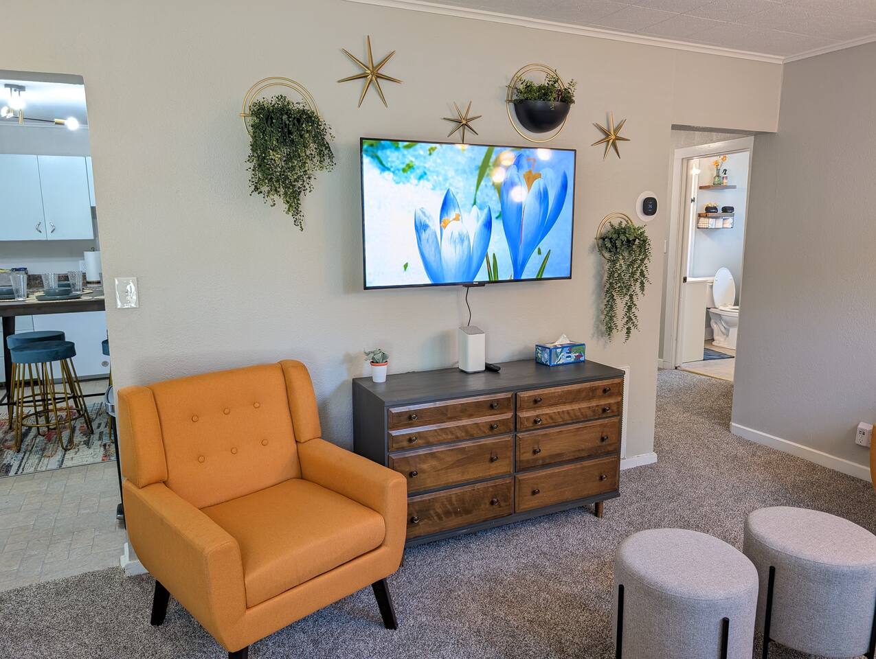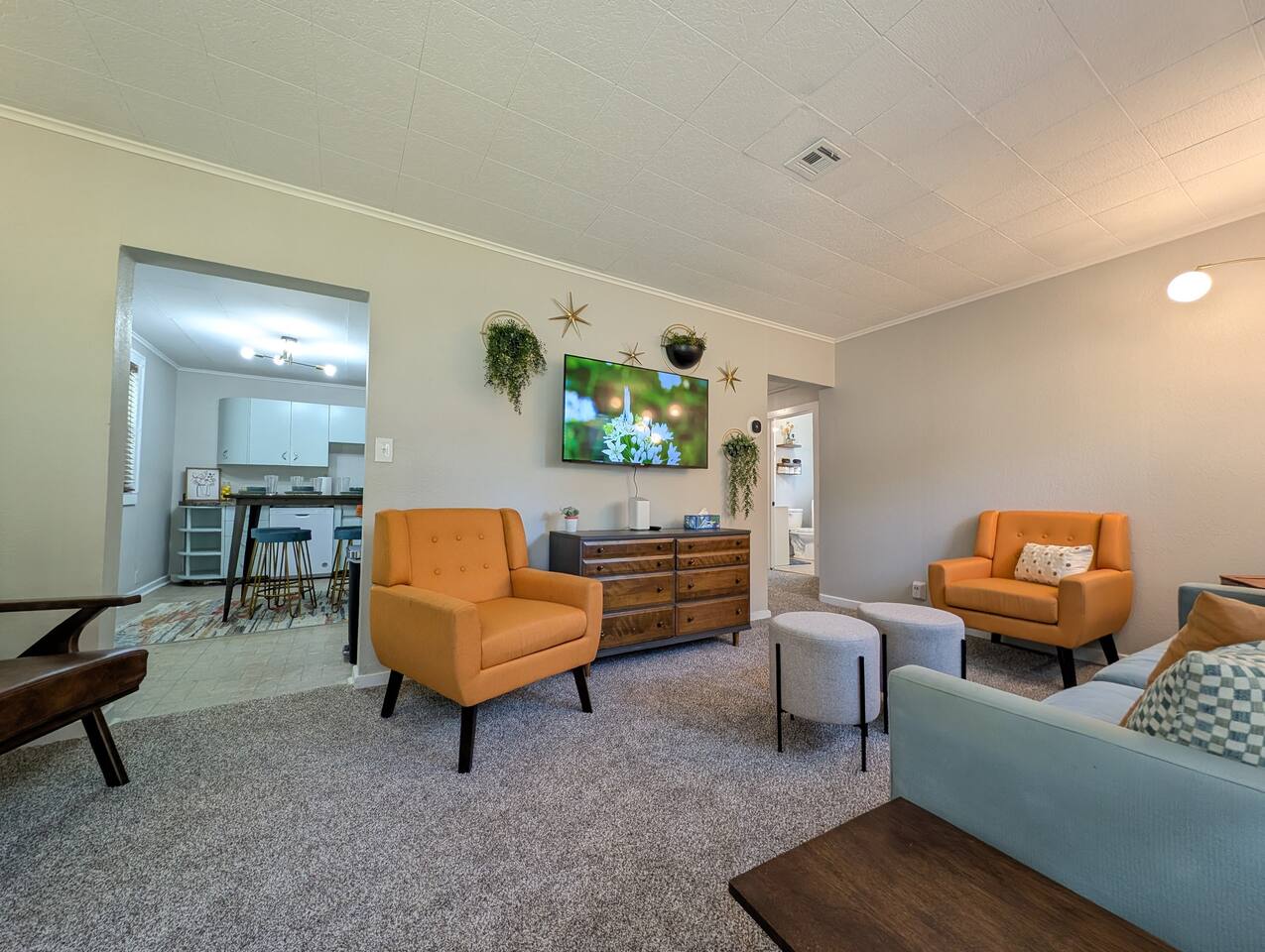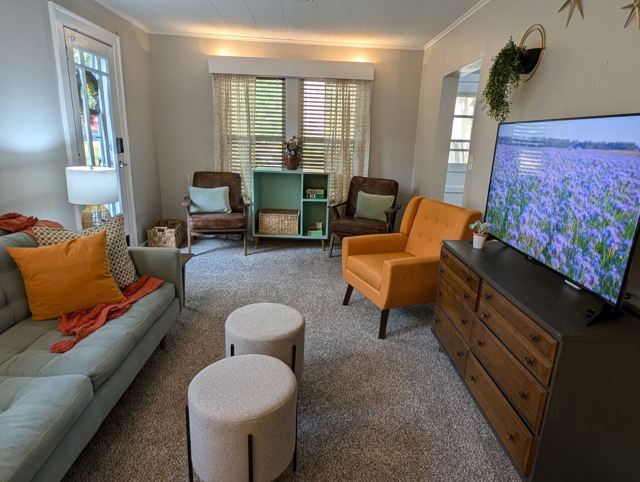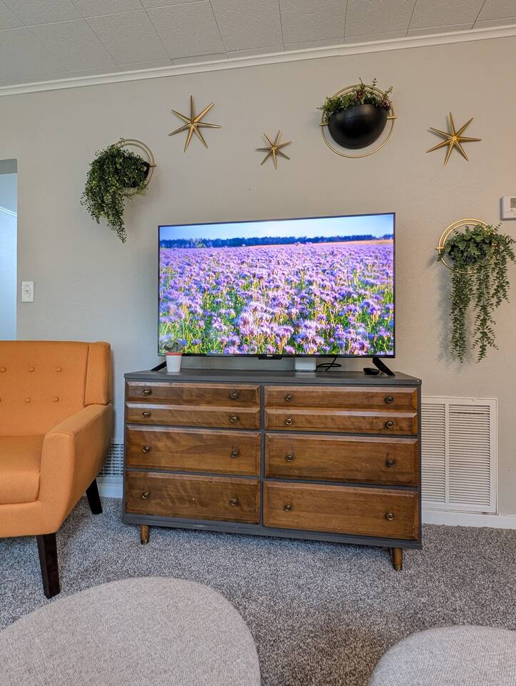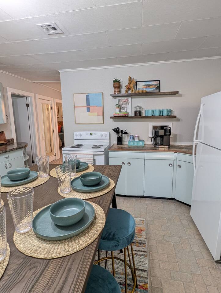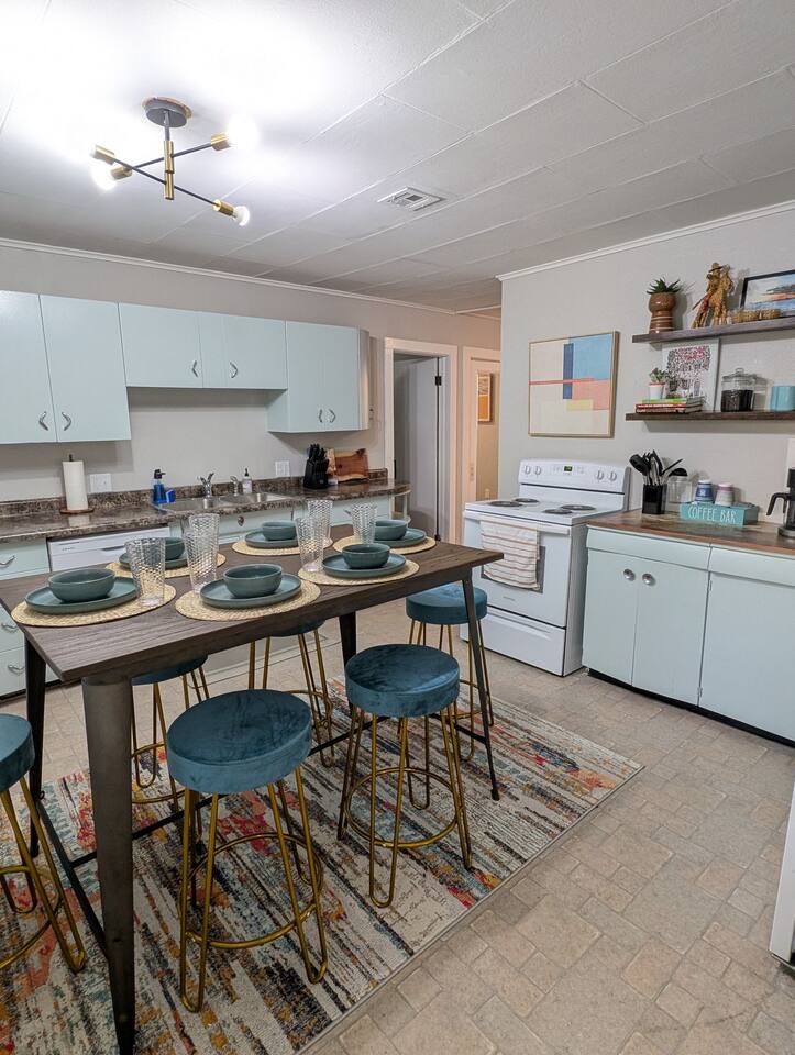Welcome to your stylish retreat in the heart of Manhattan, Kansas! This beautifully designed, single-level home offers the perfect blend of comfort and mid-century modern aesthetics, providing a cozy haven for families, friends, or anyone seeking a relaxing getaway. -3 blocks to KSU Campus -8 minutes to Football Stadium, Basketball facility, Baseball, and soccer! -Less thank a mile to Aggieville! -5 minutes to Poyntz Ave/downtown