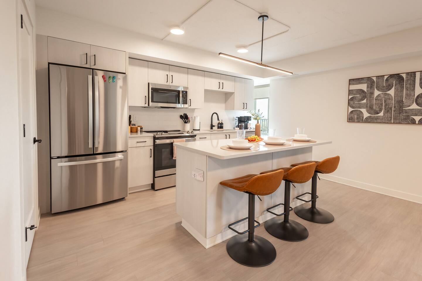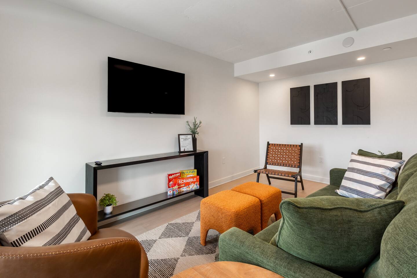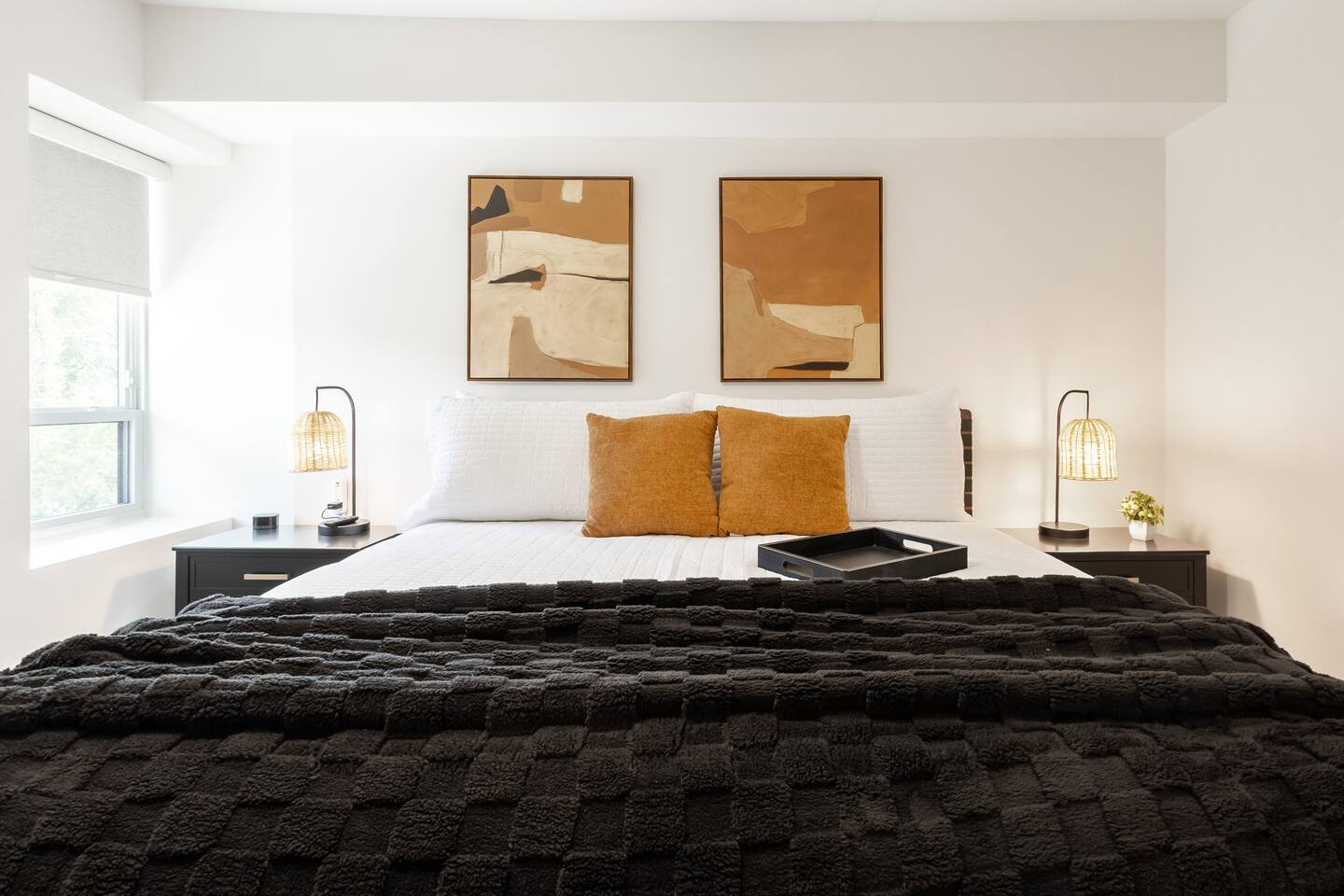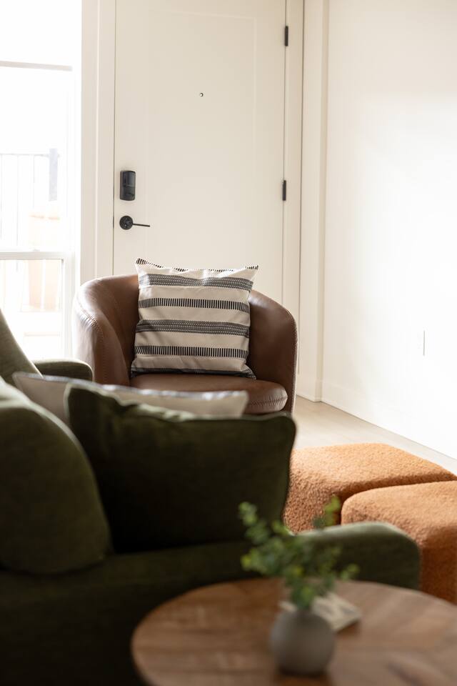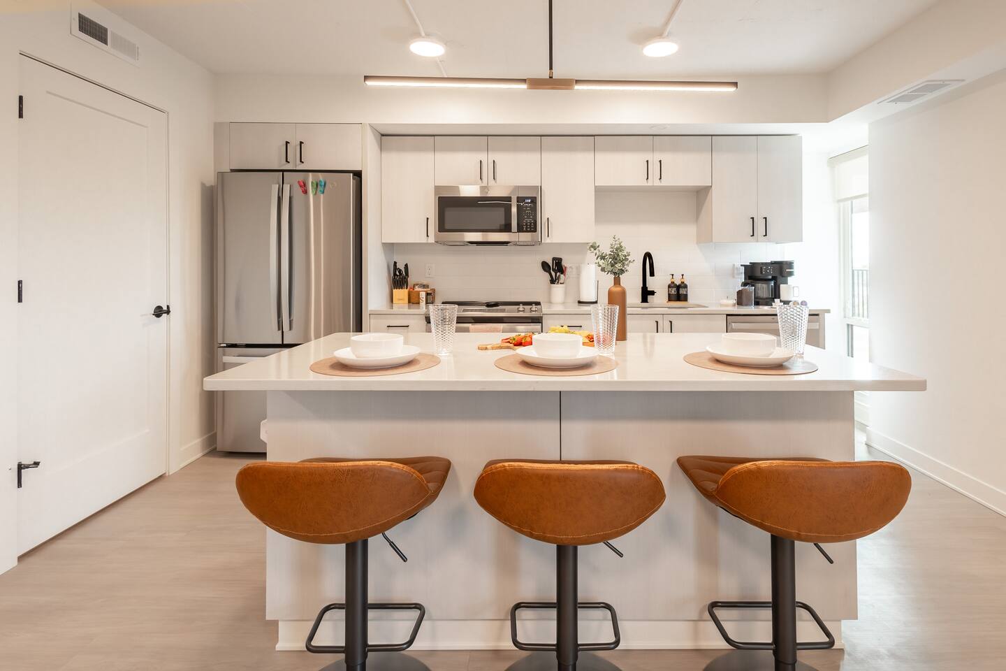 Welcome to your home above the hills! This beautifully remodeled 2-bedroom, 2-bath loft at Skyline Lofts offers comfort, style, and unbeatable views of the Kansas State campus and the scenic Flint Hills. Inside, you’ll find a light, bright space with all-new finishes — from the modern light cabinetry to the stylish mix of brown, grey, and green-toned furniture and linens.