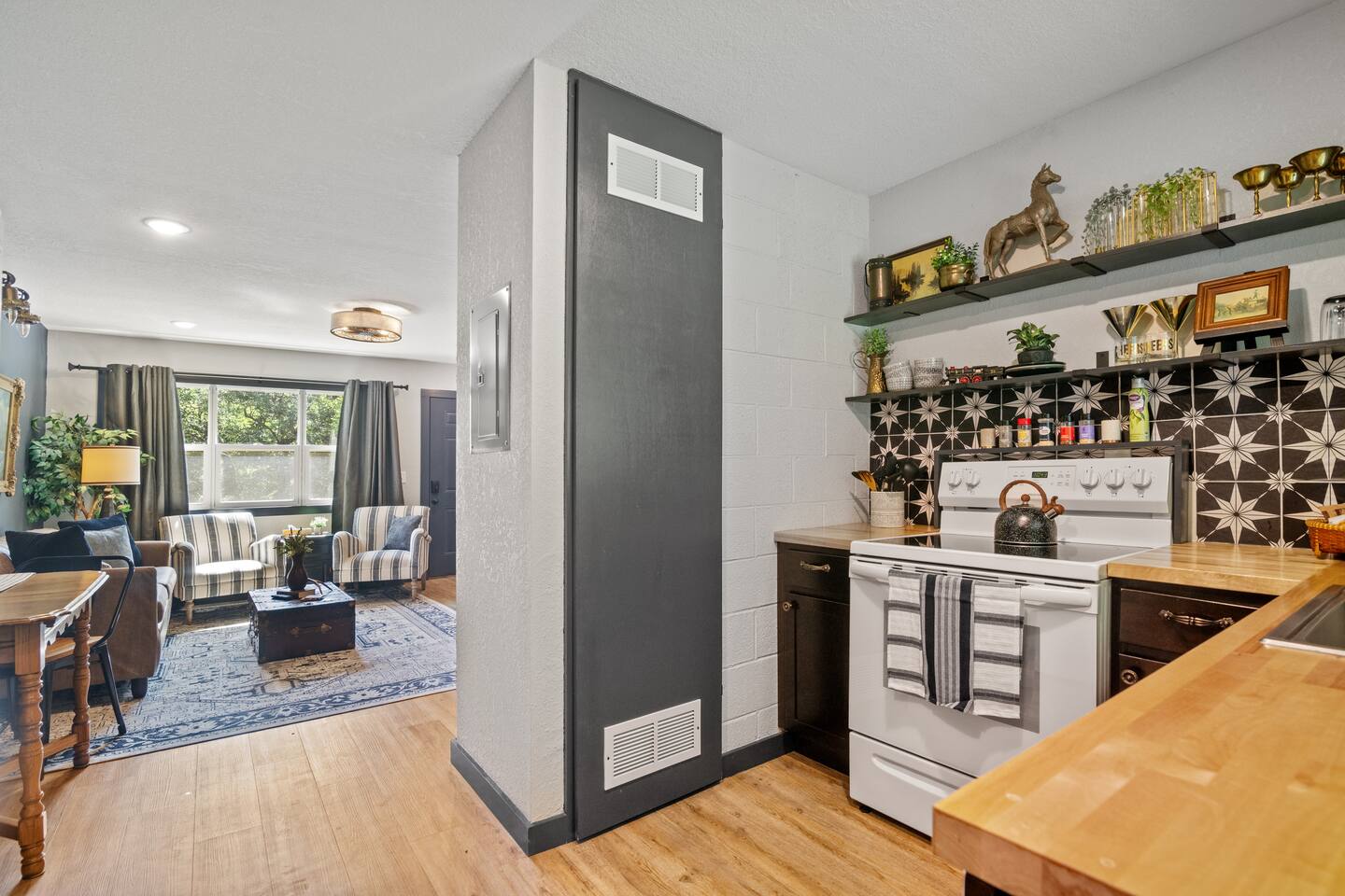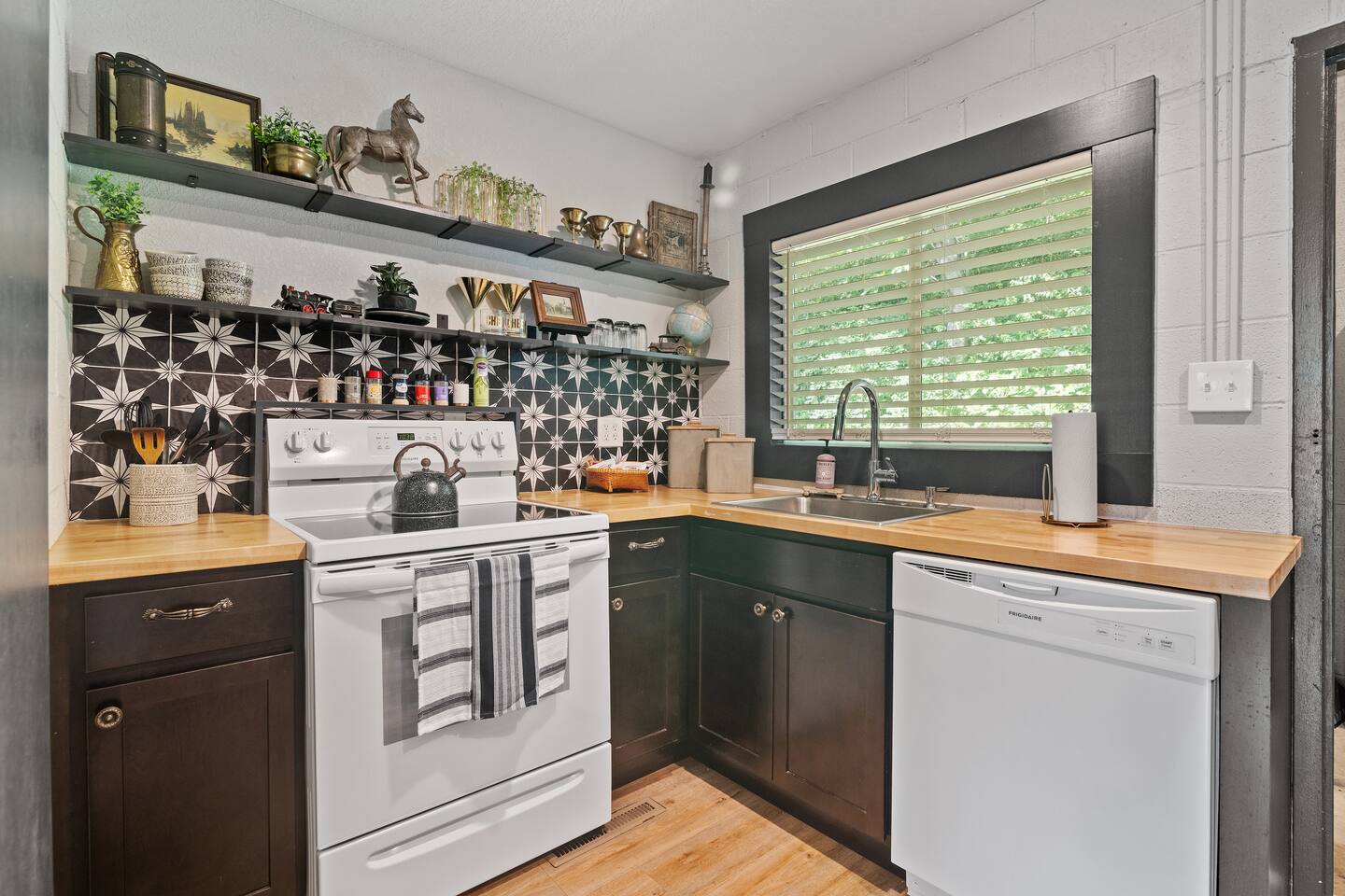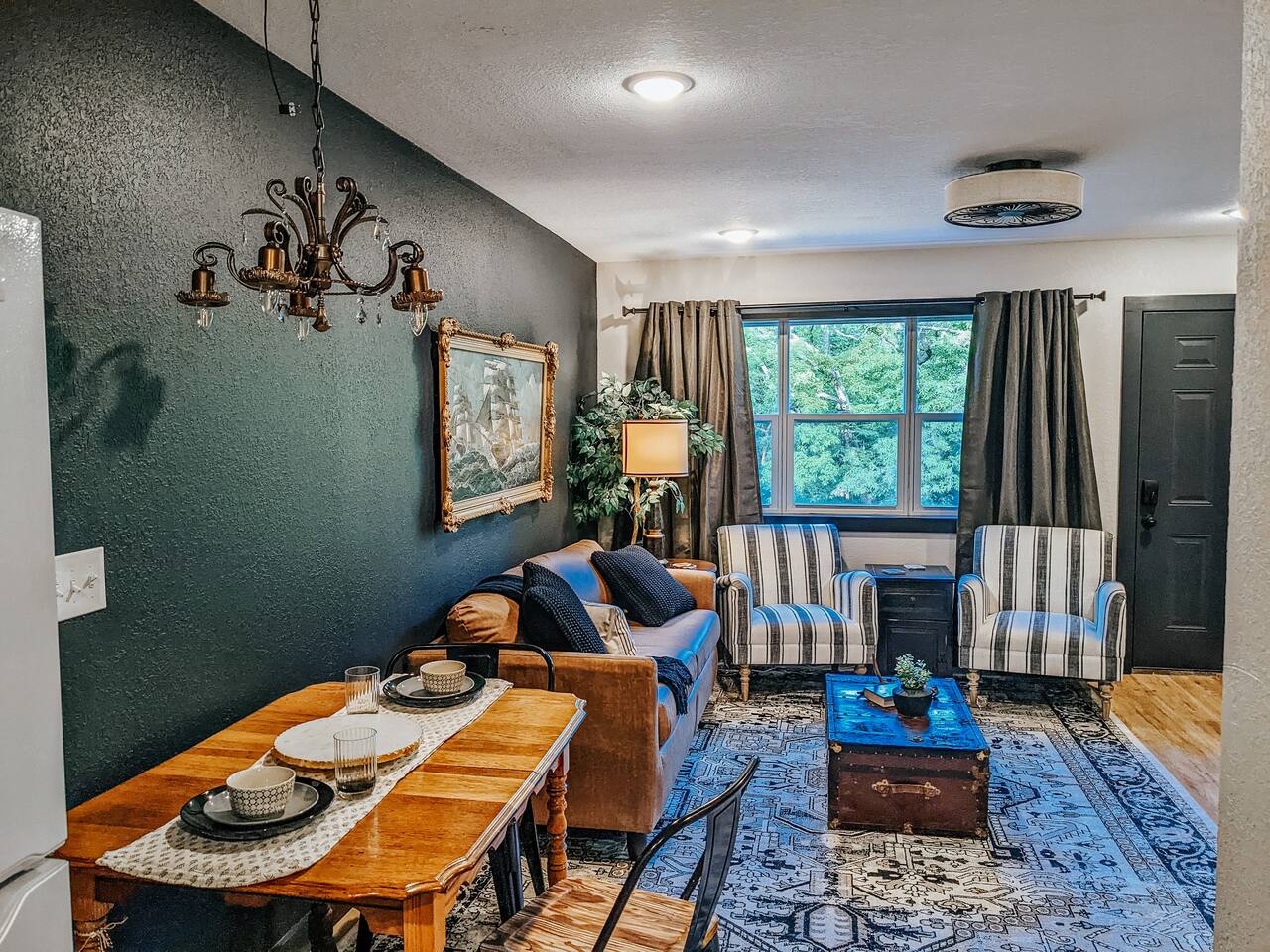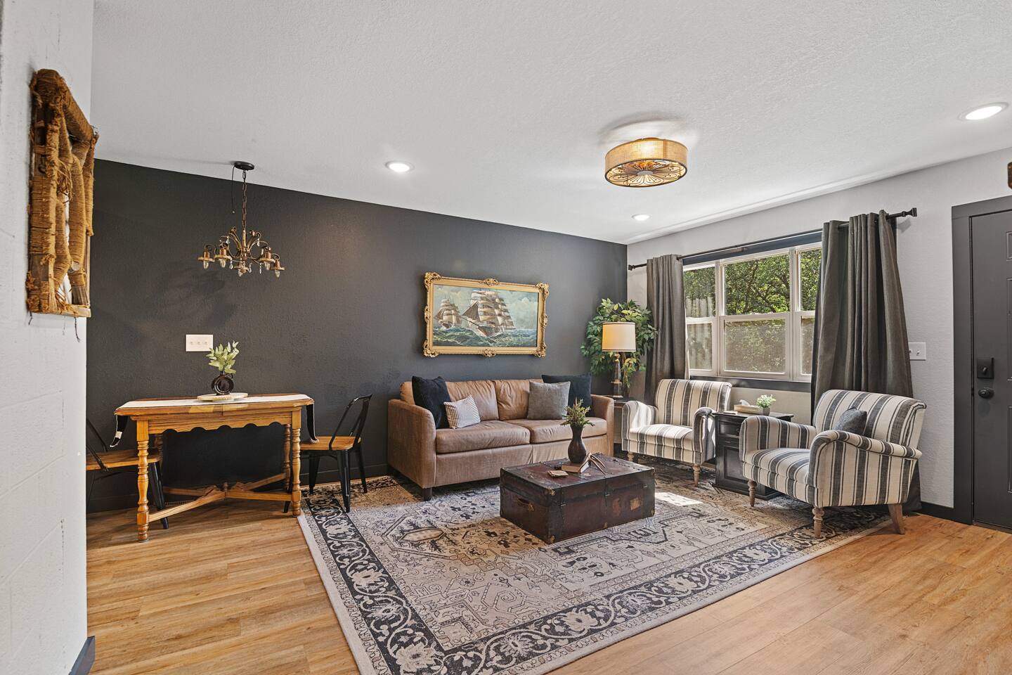 All Aboard! Soak up the vintage charm of this newly remodeled duplex. This two bedroom one bath is perched on top of a hill with about 20 steps going up as seen in photos. This home takes you back in time to when things were simple. Ships, trains, planes, and wagons are seen throughout as well as castles from a life long long ago. This unique place has a style all its own and is ready to host you for your next adventure!
