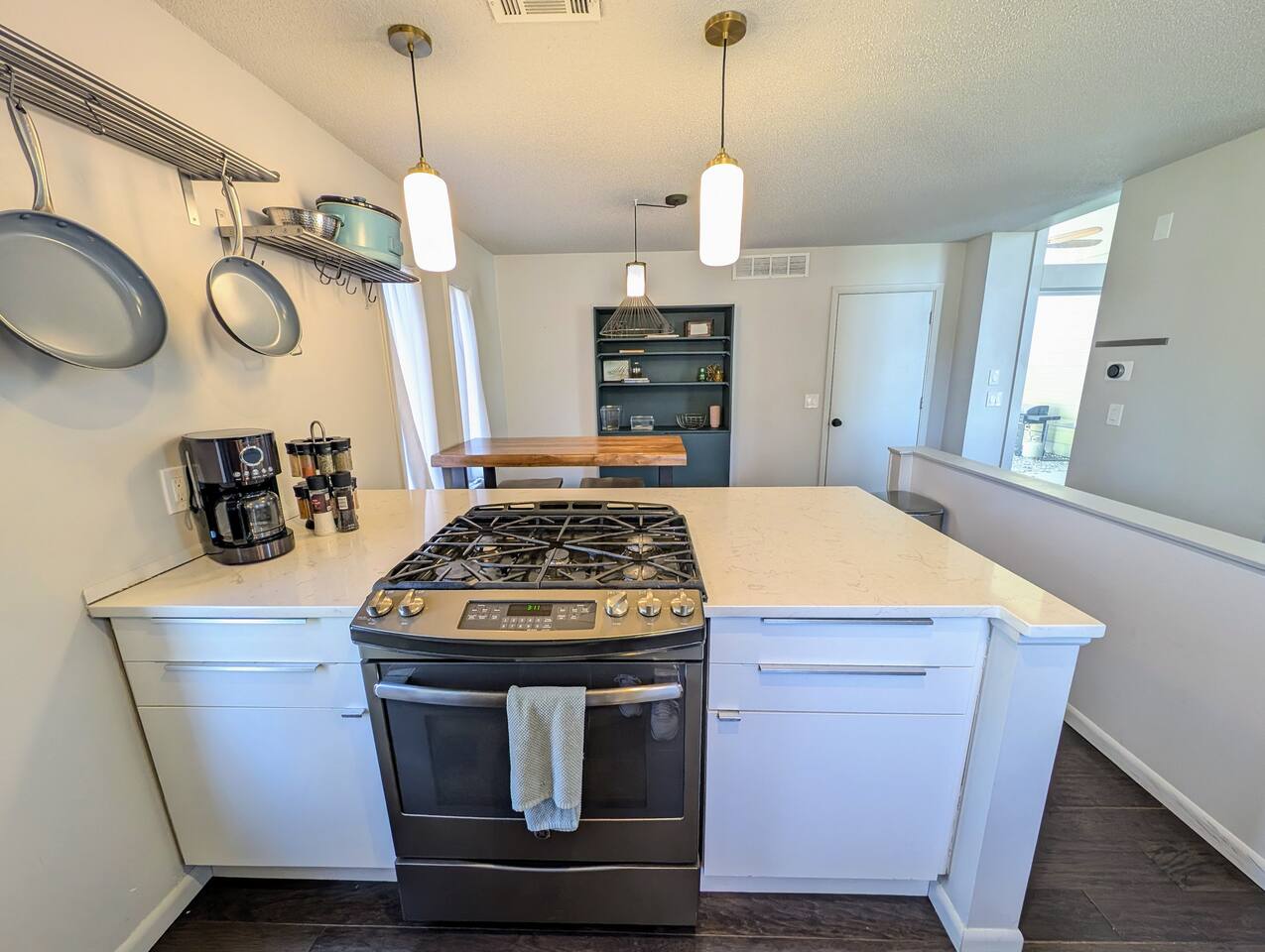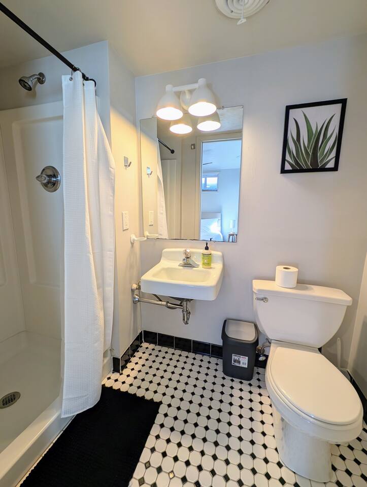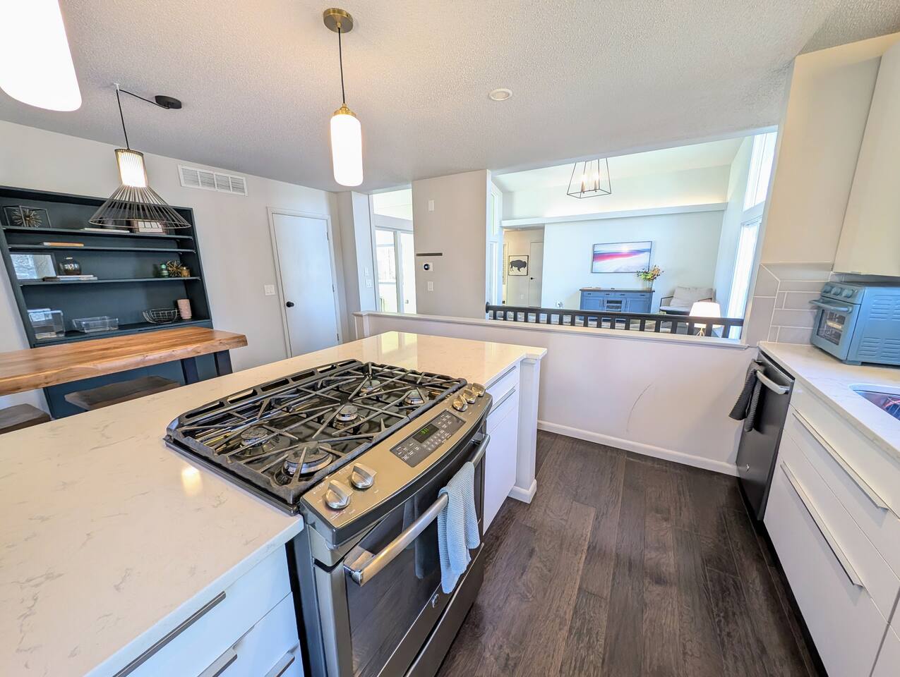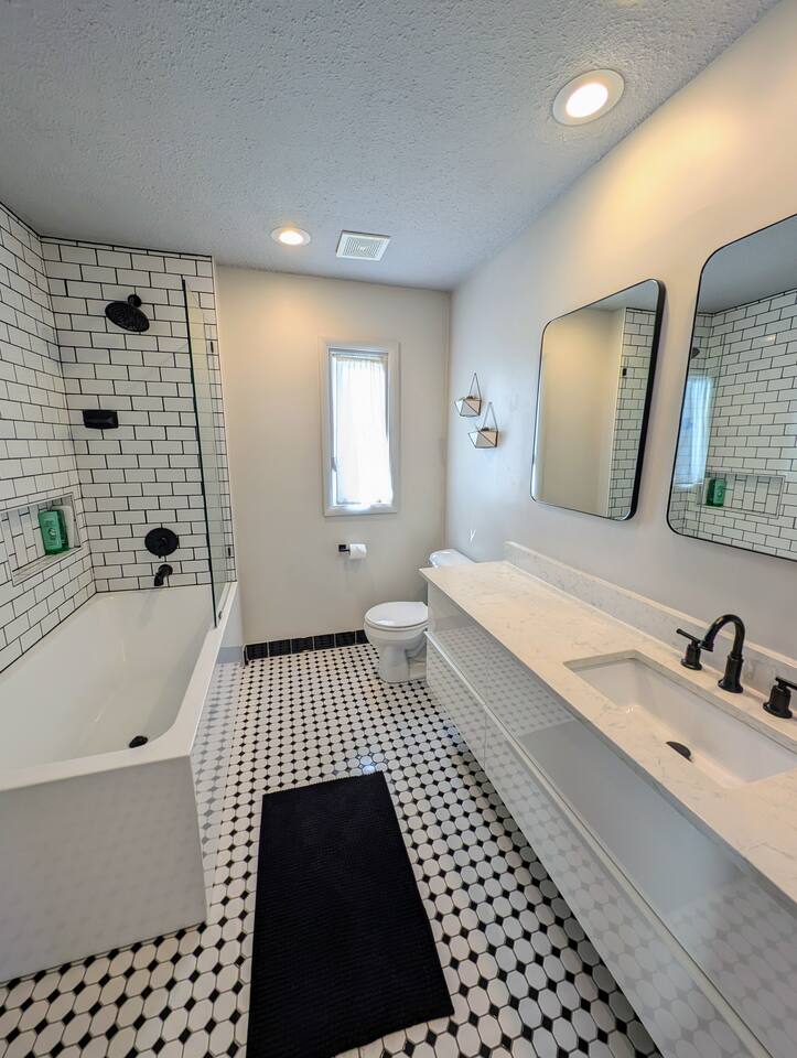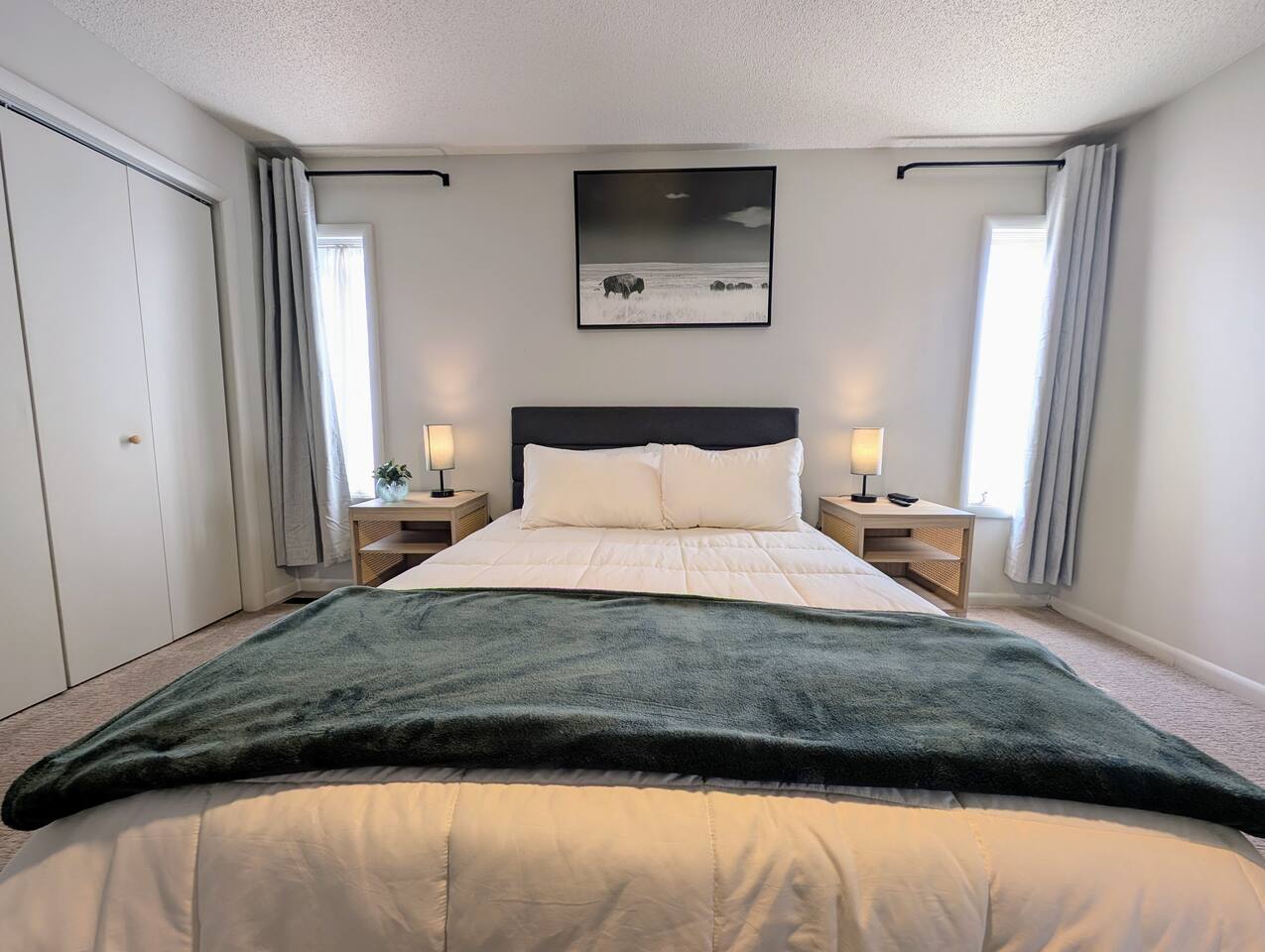 Experience the perfect blend of Mid-Century charm and modern elegance in this stunning home. Boasting expansive windows and vaulted ceilings, the open-concept kitchen, dining, and living area is filled with natural light and features a spacious sectional for relaxation. The main floor offers two cozy bedrooms with queen beds and a fully renovated bathroom, complete with a stylish tub and shower combo. The beautifully finished basement provides additional space, including a second living area with a queen sleeper sofa, a desk, and a dining table perfect for games or work. You’ll also find a bedroom with a queen bed, a small bathroom with a shower, and a convenient laundry room. This home combines comfort, style, and functionality—ideal for a memorable stay!