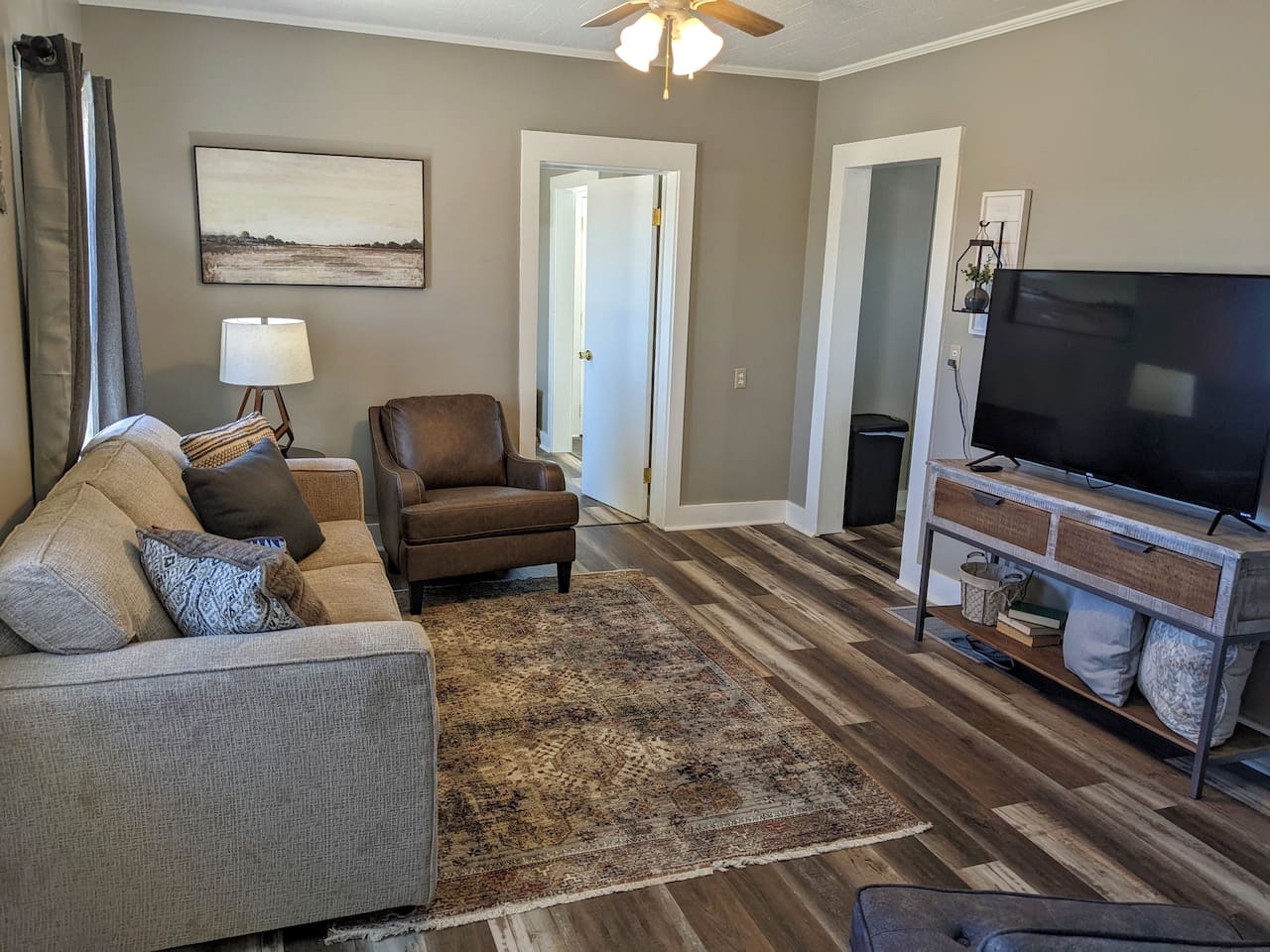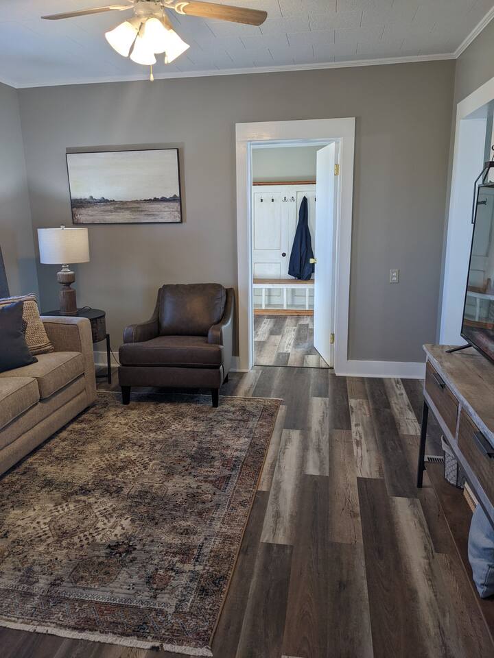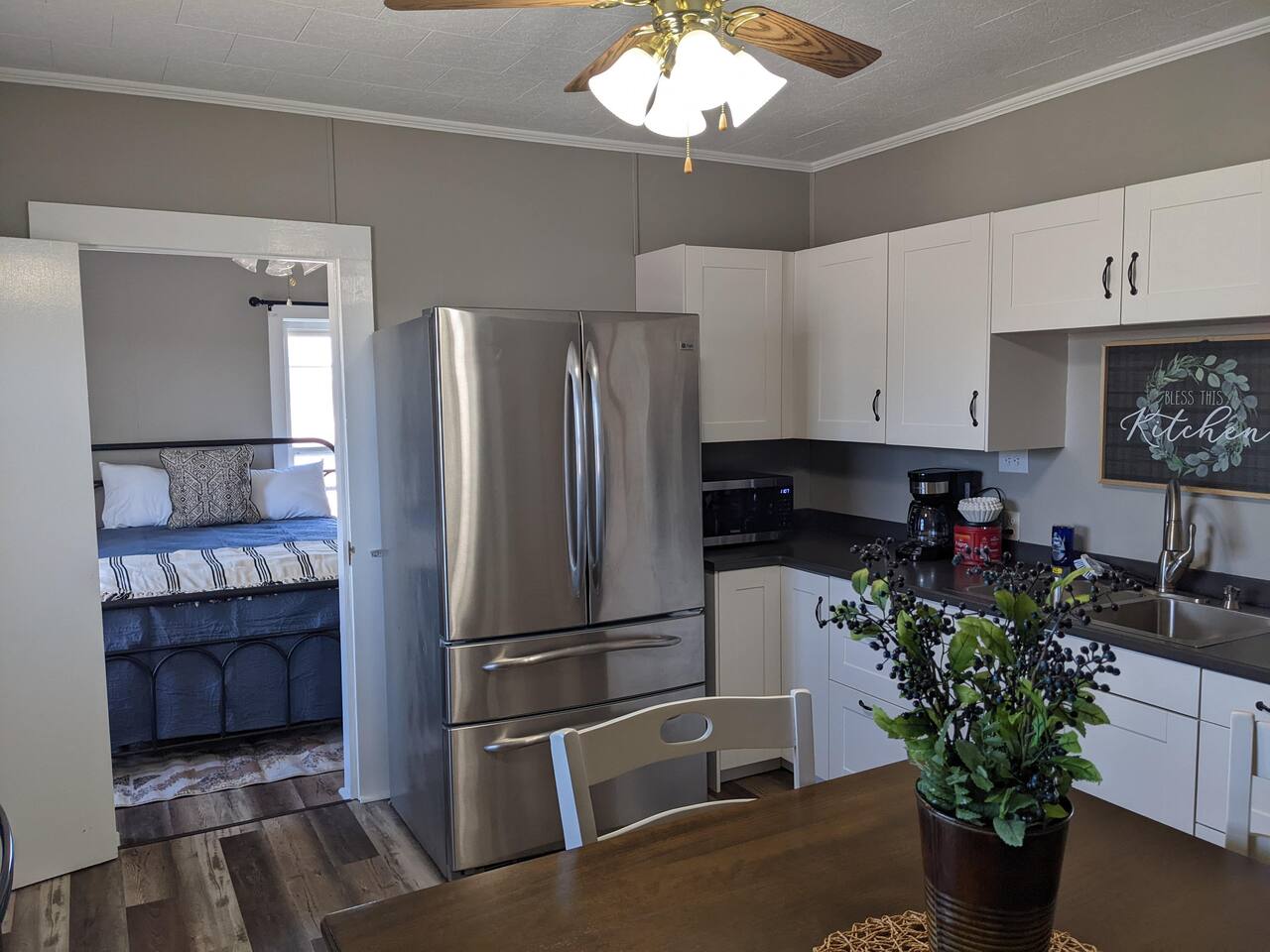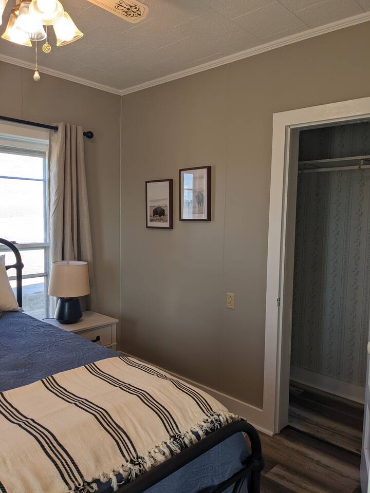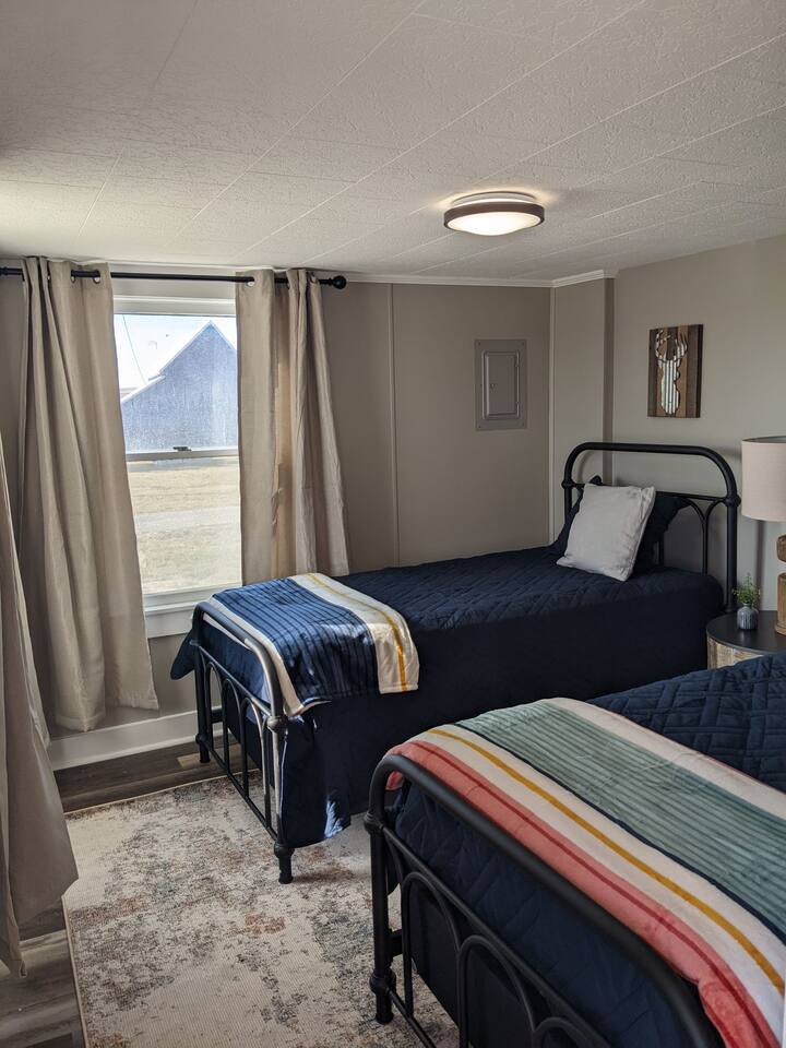 Nestled amidst the serene Kansas plains, this charming farmhouse offers a fully equipped kitchen, a spacious living room with a queen sleeper sofa, and two cozy bedrooms—one with twin beds and the other with a queen—boasting ample closet space. Enjoy panoramic views of the surrounding fields and convenient access to nearby hunting grounds and Perry Lake, ensuring a perfect blend of relaxation and outdoor exploration for an unforgettable getaway experience.