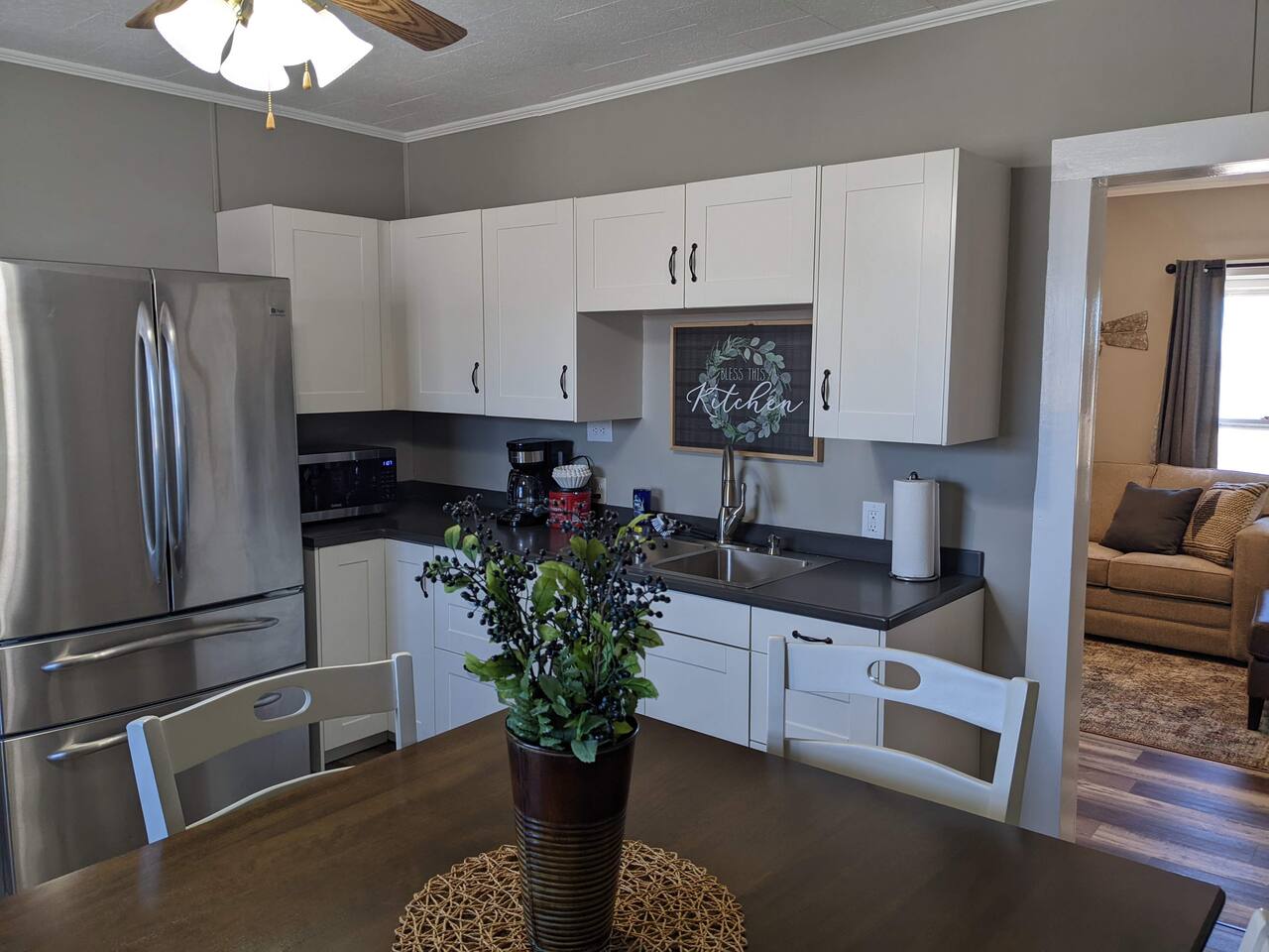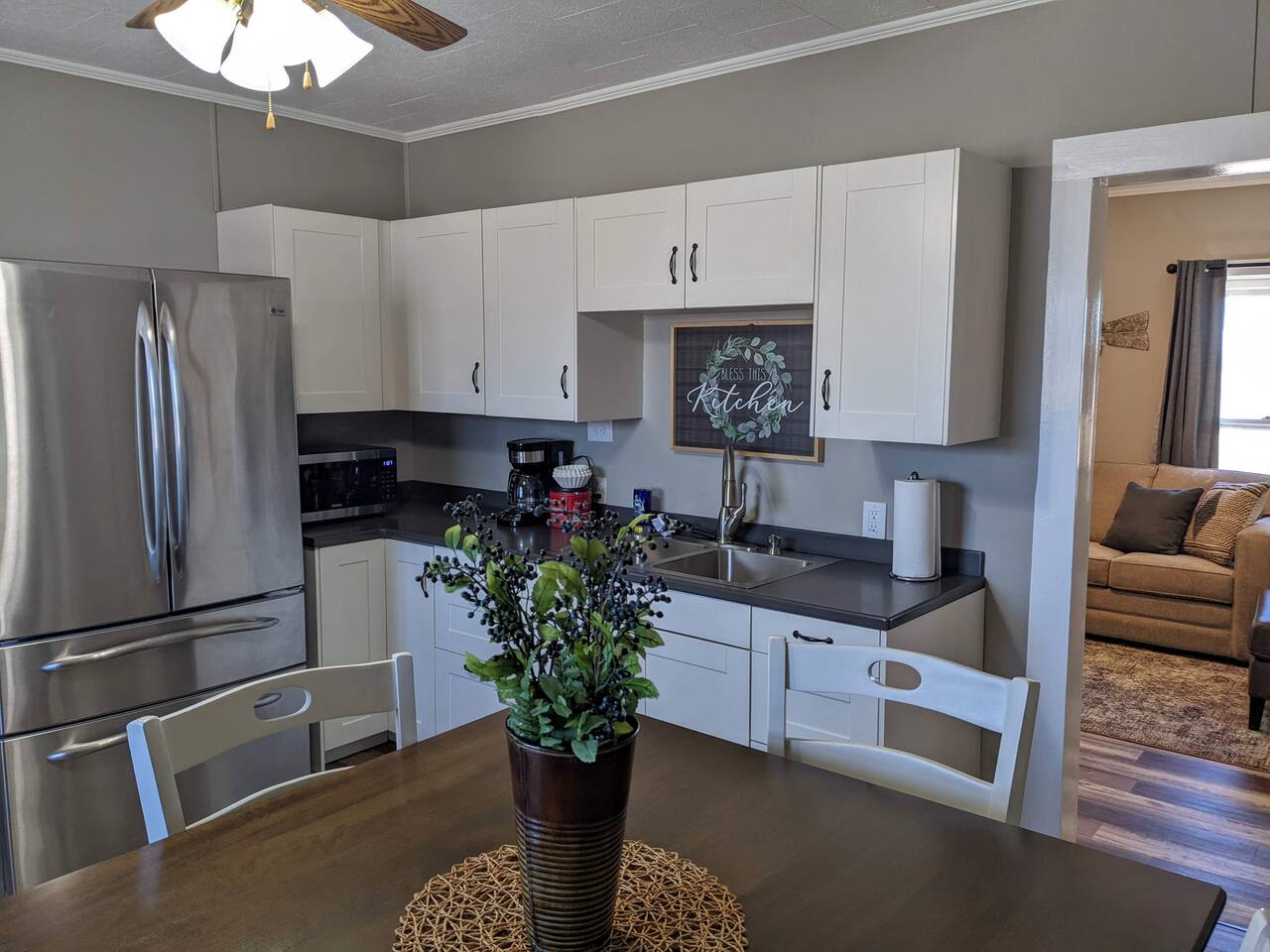 This picturesque farmhouse offers a serene retreat amidst vast hunting land, boasting breathtaking views as far as the eye can see. Step inside to discover a fully stocked kitchen, complete with all the essentials for creating delicious meals. The bathroom features a luxurious tub and shower, providing a relaxing oasis after a day of outdoor adventure. With two charming bedrooms adorned with cozy furnishings—one showcasing a plush queen bed and the other boasting two inviting twin beds—everyone will find their perfect sanctuary. In the cozy living room, a comfortable queen sleeper sofa awaits, ensuring ample space for additional guests. Outside, a rustic fire pit surrounded by Adirondack chairs beckons you to unwind under the expansive sky, soaking in the tranquility of the surroundings. This fully loaded farmhouse provides everything you need for a seamless stay, from fresh linens and towels to a convenient laundry room, allowing you to fully immerse yourself in the beauty of rural living. -VERY close to hunting ground and great fishing spots! -10 minutes to Valley Falls -15 minutes to Village Greens Golf Course -20 minutes to Lake Perry -30 minutes to Prairie Band Casino -30 minutes to Topeka