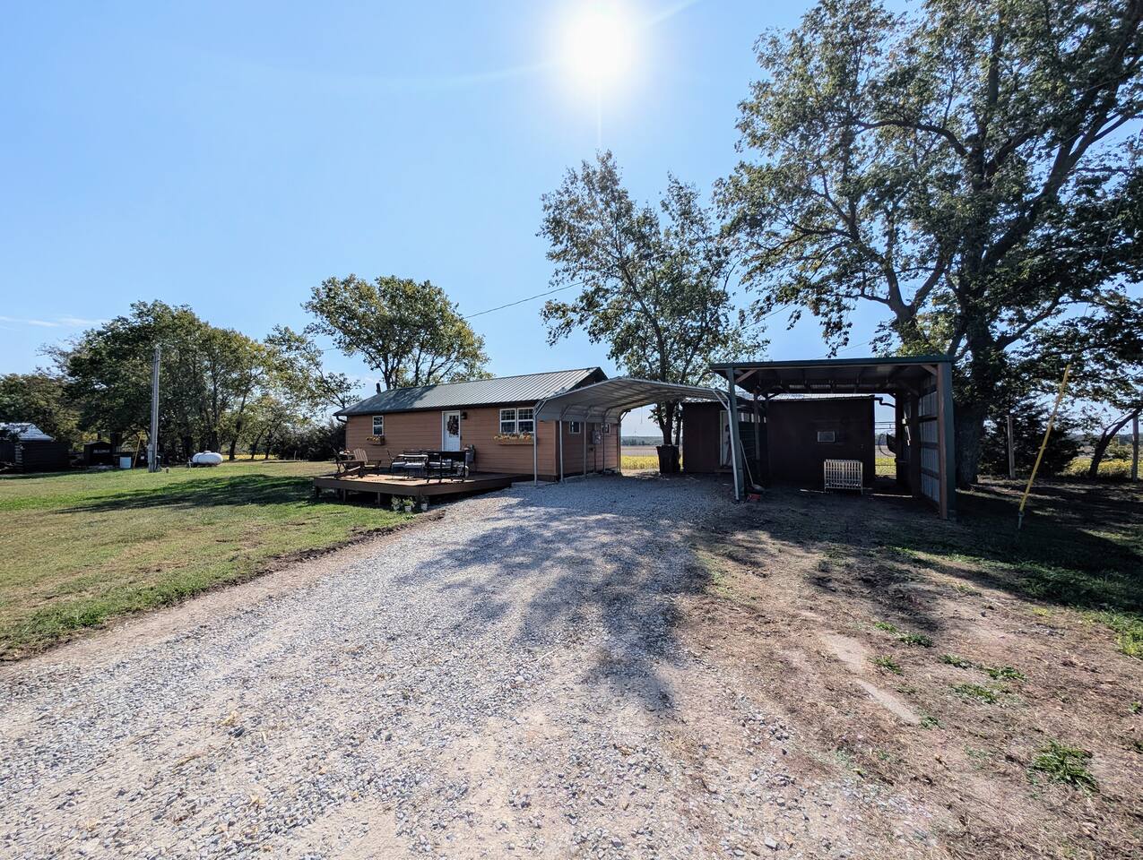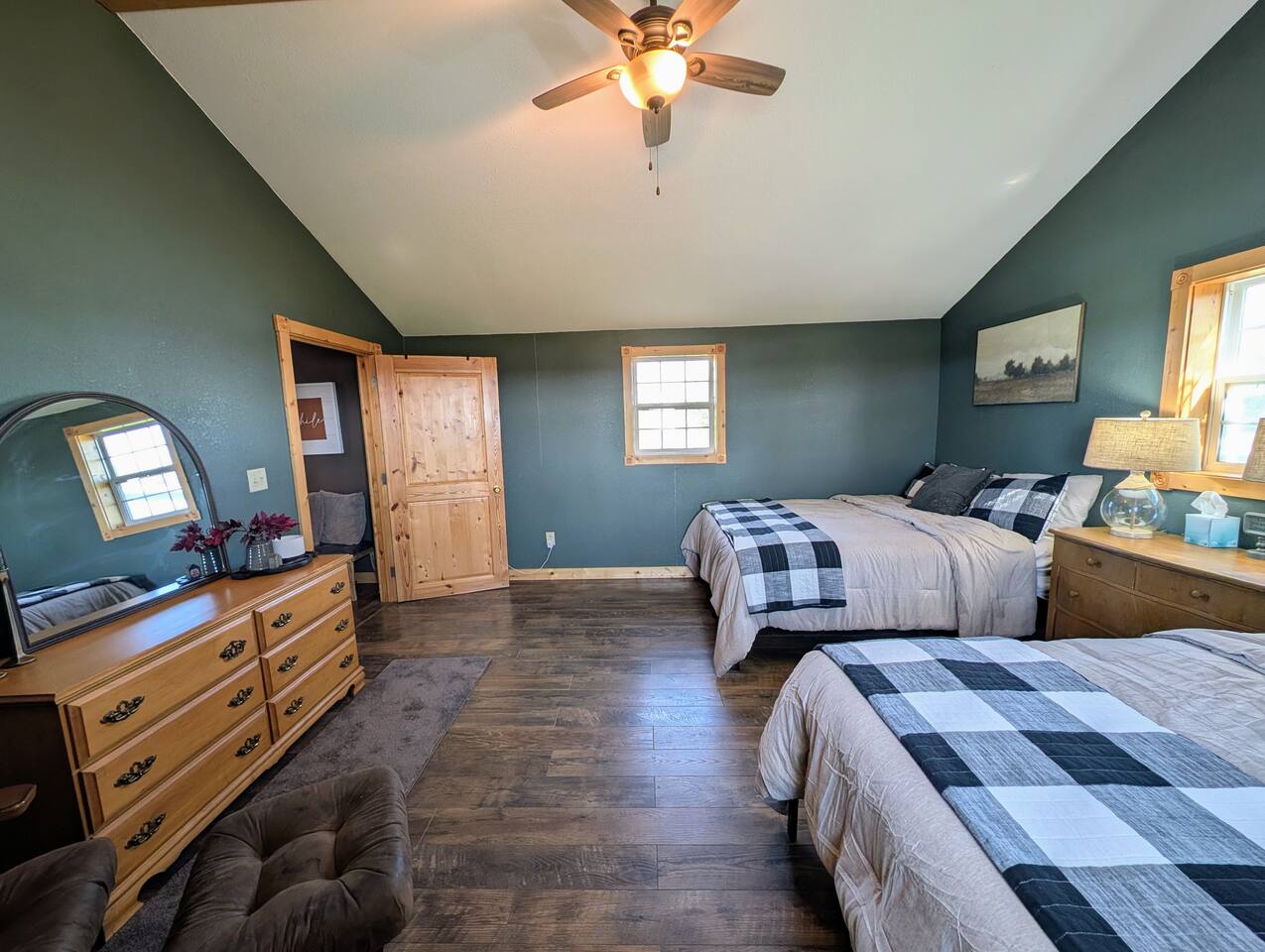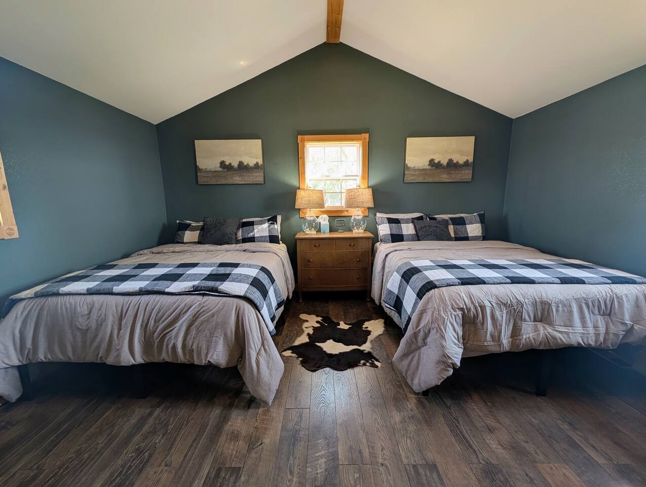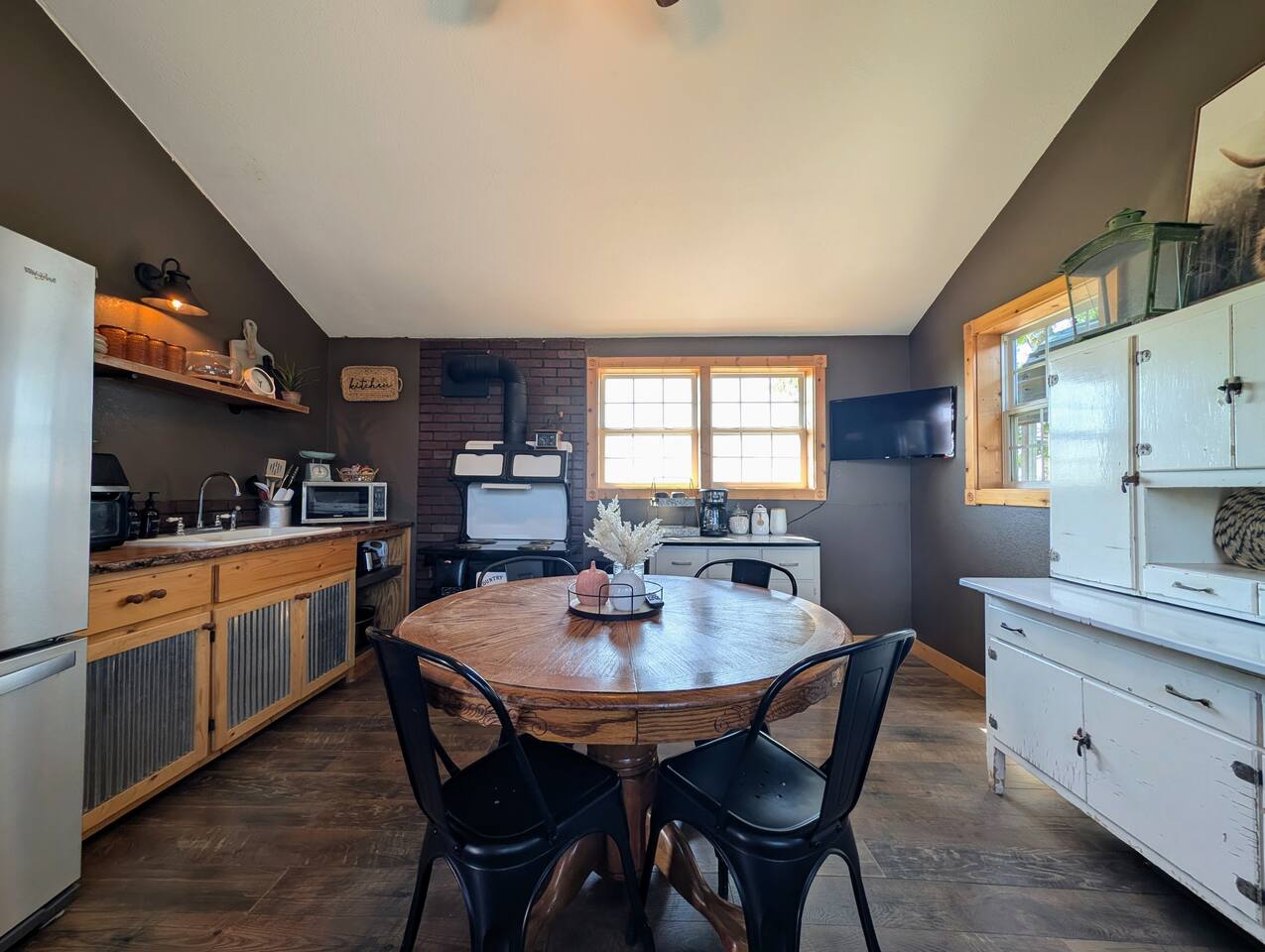 Just 5 minutes from Frankfort, KS, this beautifully renovated cabin offers serene views for miles. The spacious bedroom features two queen beds, while the open living/dining area is stylish and inviting. Relax on the large front porch, perfect for sipping coffee or enjoying meals. Trendy yet tranquil, this small cabin is your calming escape